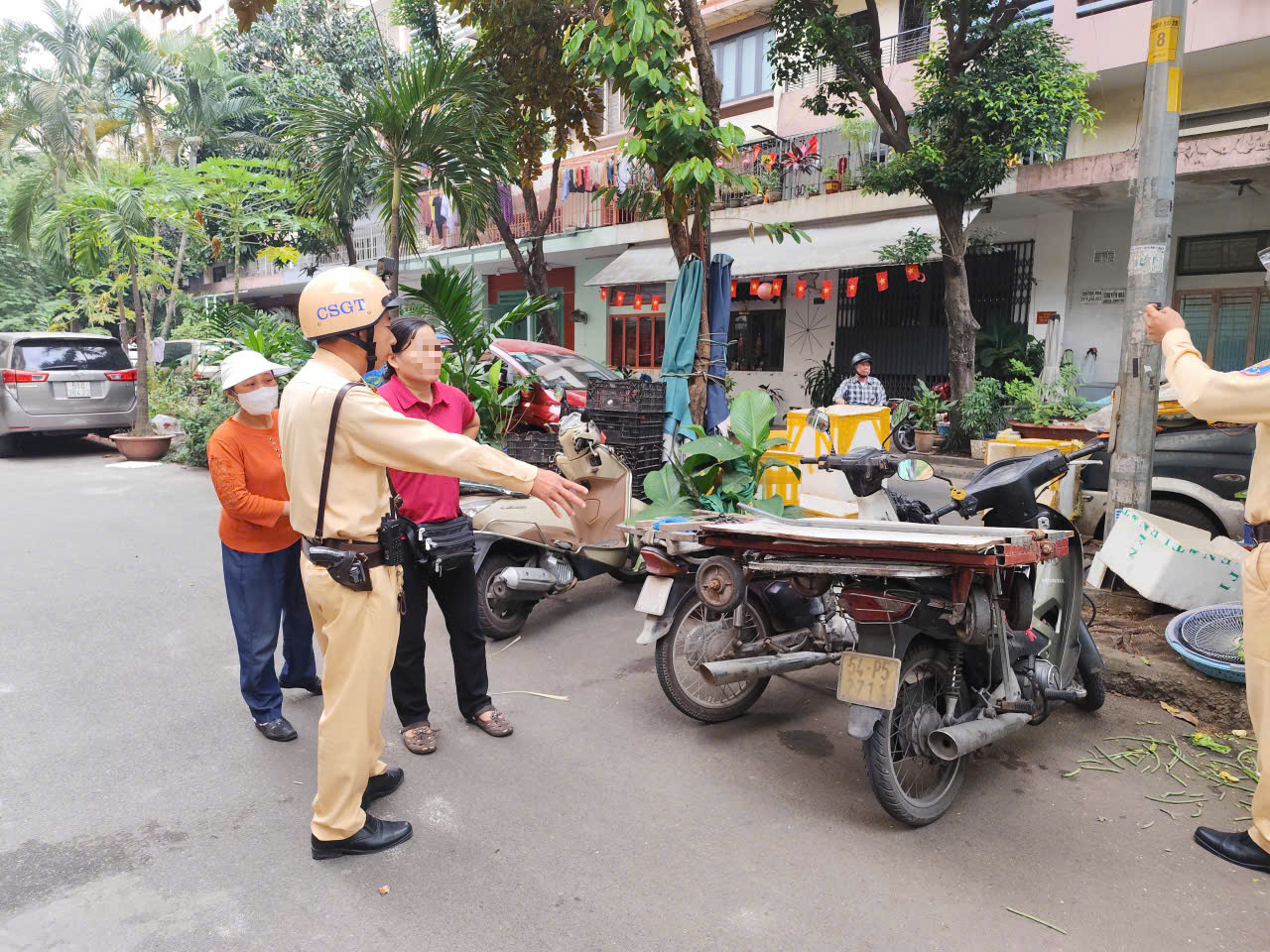 Sáng 22-1, Đội CSGT Tân Sơn Nhất (Phòng CSGT Công an TP HCM) phối hợp Phòng Cảnh sát quản lý hành chính về trật tự xã hội và Công an phường Tây Thạnh tổ chức tuần tra, kiểm soát và xử lý các hành vi lấn chiếm tại khu vực chung cư Tây Thạnh.