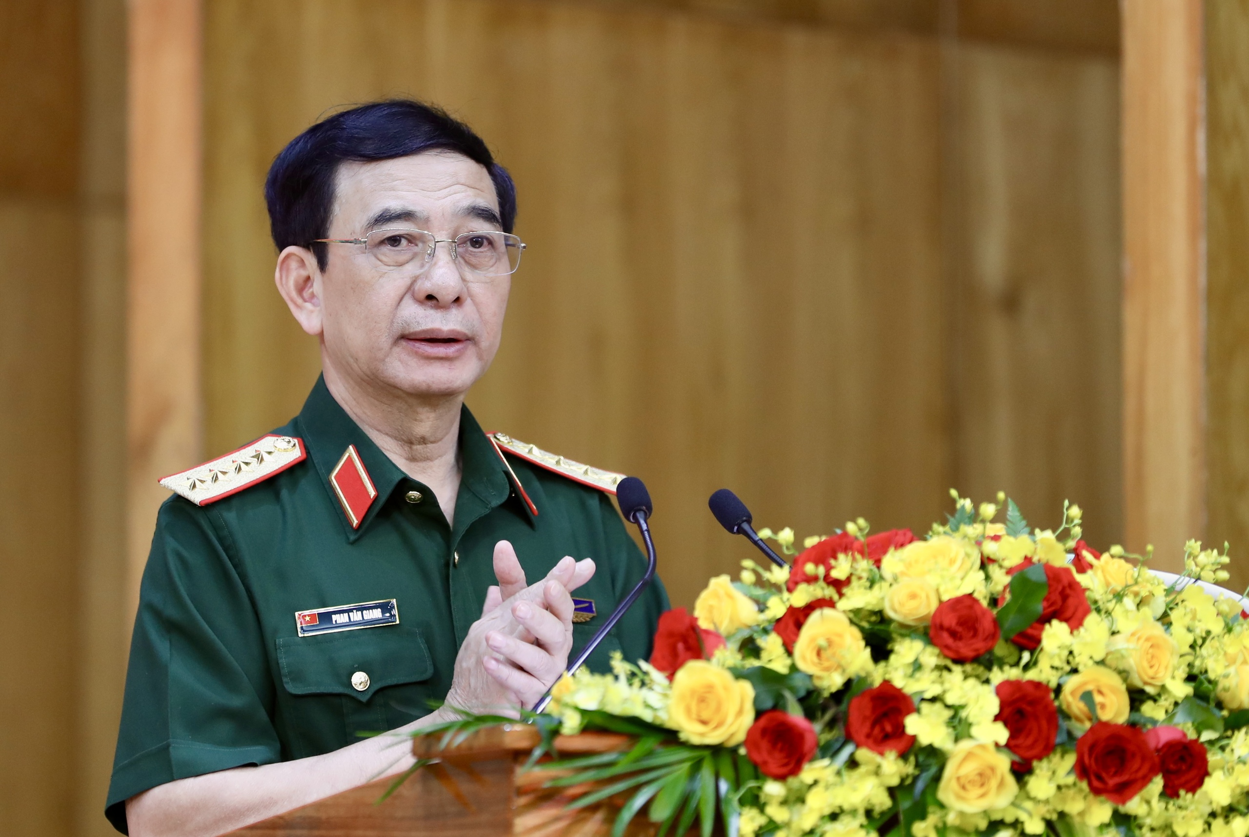 Đại tướng Phan Văn Giang, Ủy viên Bộ Chính trị, Phó Bí thư Quân ủy Trung ương, Bộ trưởng Bộ Quốc phòng, phát biểu chỉ đạo hội nghị
